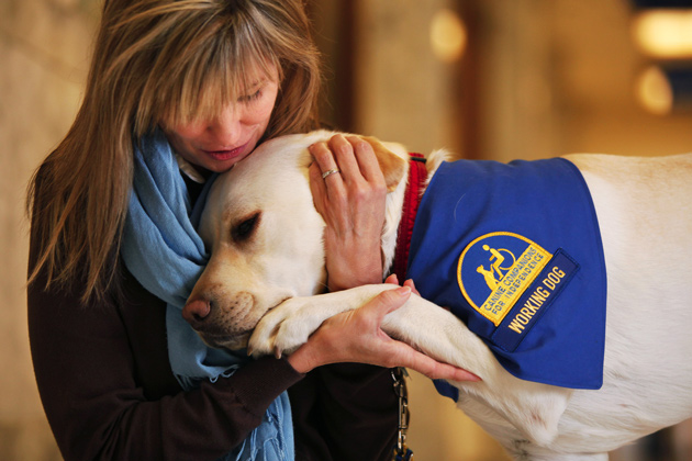 Un animal de servicio es un perro, o en algunas circunstancias, un caballo en miniatura, que ha sido entrenado individualmente para proveer asistencia a una persona con discapacidad. Algunos ejemplos de asistencia pueden ser halar una silla de ruedas, ayudar a balancear o a guiar. Un animal de servicio es entrenado individualmente para asistir a una persona con discapacidad.